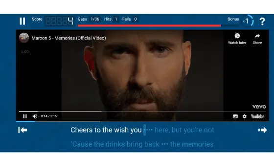 Music is a great way to practice learning English. There is so much great music in English and you can use lyricstraining.com to listen to music and improve your English at the same time. This is a listening for detail exercise which is great practice for the students who can understand about 70% of English and want to understand everything.